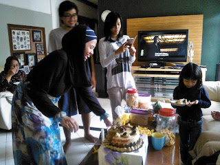 This is what happened on my birthday party. I'm asking my big family to gather at my cousin's house (my house is such a mess, because there is no maid in my house. Me and my family had to clean up all by ourselves though we couldn't do it completely). Of course, I'm asking my uncle's permission to make it happen. And it happen (although not all of them can come)! I'm very happy and thrilled with their arrival.